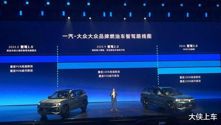 全新探岳L的核心标签是“智能油车扛把子”,其底气源于一汽-大众行业首个“燃油车三步走智驾路线图”: